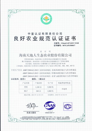 公司获良好农业规范(GAP)认证
