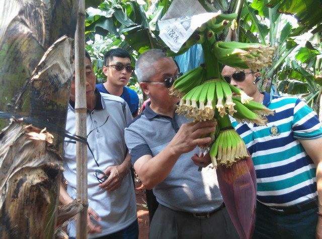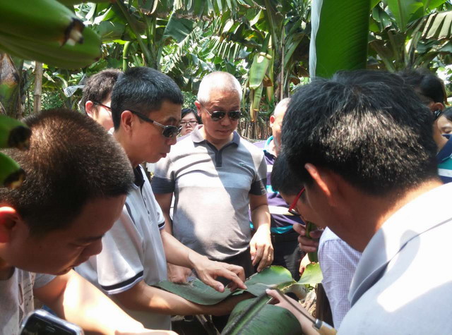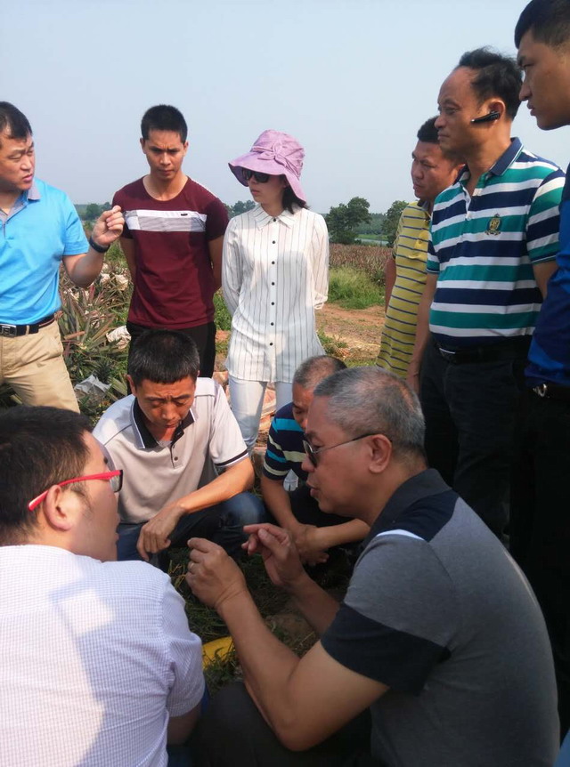 2016年4月17日,菲律宾香蕉协会首席香蕉专家Jojo(任开普公司亚太区技术总监、曾任巴斯夫全球首席香蕉专家,陶氏益农亚太区高级作物专家)一行,在公司赵军副总裁、生产部总经理杨朝峰的陪同下,考察我公司福山菠萝、临高香蕉基地。双方对菠萝用肥管理、主要病害防治经验及香蕉枯萎病防控技术和方法,香蕉果期品质管理等方面进行了深入交流。