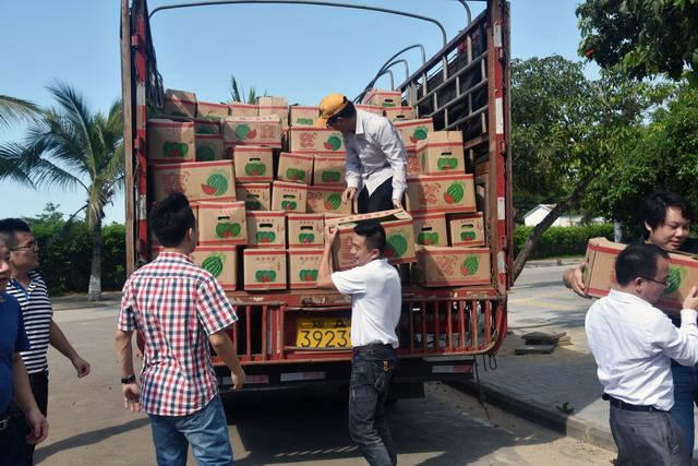 为了帮助解决文昌铺前镇瓜农西瓜滞销难题,公司积极响应海南省农业厅组织省级农业龙头企业献爱心、助瓜农的号召,5月29日特派外联部部长许坚亲自前往文昌市铺前镇林梧村,现场采购几万斤西瓜,帮助瓜农度过难关,减少损失。