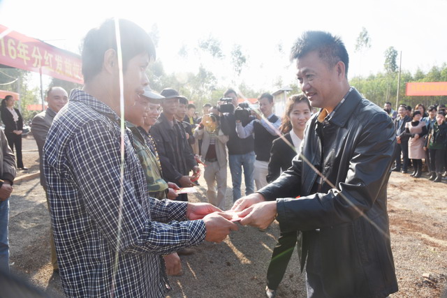 此次分红仪式上,公司向多贤村委会多贤上村、多贤下村和美郎村的383名贫困人口每人发放1200元的红利。此后公司还将陆续将扶贫分红款发放到其他村委会会贫困户手中,让贫困户参与公司产业化运营当中,获得固定收益,快速脱贫致富。