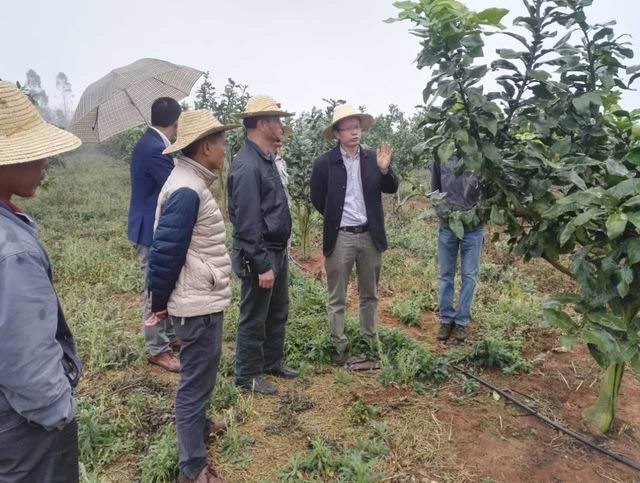 3月8日,公司聘任的华中农业大学博士生导师、国家现代农业(柑橘)体系资源及育种研究室主任、柑橘体系岗位科学家——伊华林教授,也如期而至赶到了临高兰罗、美盛、道霞柚子基地,现场观察蜜柚树生长长势、指导肥水管理等生产种植规程方案,期间组织生产部、柚子事业部及相关部门讨论研究,针对海南热带气候特点提出关于树体枝条修剪、促梢壮花、以促梢促蕾;疏梢疏花,促春梢老熟;促花保果,提高座果率种植方案;建议种树形成隔离带,既可以防风同时也防病虫害等柚子园林规划。