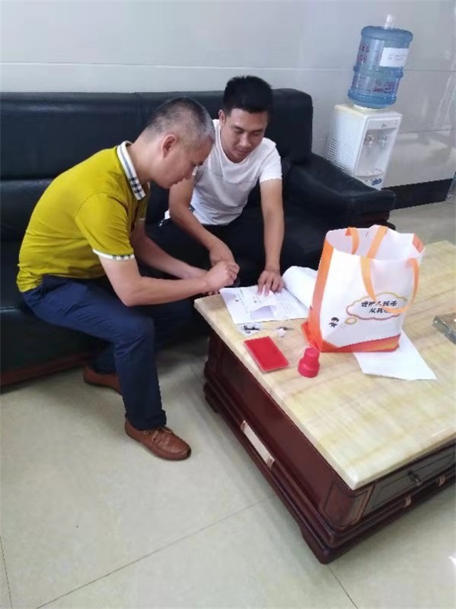 天地人公司财务人员、临高县信用社总行负责人、波莲镇派出所、波莲镇村委会代表合影留恋